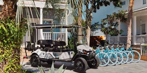The home provides a complimentary six-seater, street legal, golf cart and six bikes to explore 30A anyway you want!